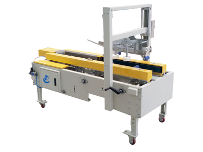 聯系我們人工將撐開的紙板故入成封箱機后,該機能自動完成紙箱下 部折頁折蓋及上部折蓋、封箱等一系列工作。該機應用范圍廣、占地面積小、可單機使用或配合輸送設備實現自動化包裝。
